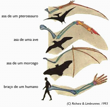 As asas dos morcegos são diferentes das asas de aves porque não possuem penas suportadas por ossos. Essa semelhança em função, mas diferença em origem é chamada de convergência evolutiva. As asas de morcego possuem origem similar com os braços humanos, sendo homólogas.